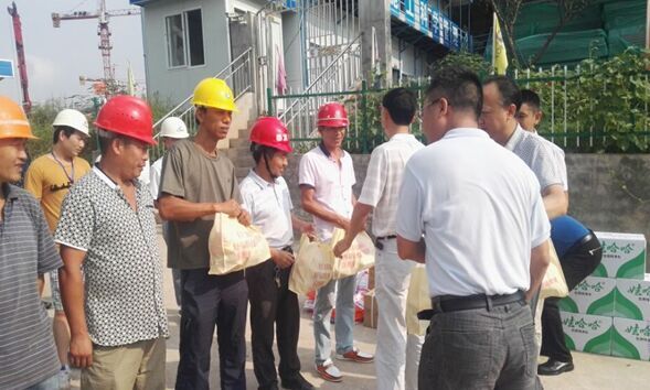 2015826日上午,市總工會副主席許明烽一行深入081產(chǎn)業(yè)新城一號安置點施工現(xiàn)場,看望、慰問奮戰(zhàn)在高溫一線的工人。